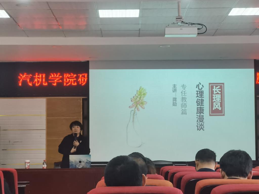 为进一步提升研究生导师、班主任在实际工作中对学生心理危机的识别和防控能力,切实发挥导师和班主任在学生工作中的重要作用,汽机学院于11月30日下午14点30在工一b417召开了研究生导师及班主任心理健康专题讲座,本次讲座由taptap点点体育心理中心主任龚勋老师作为主讲人。