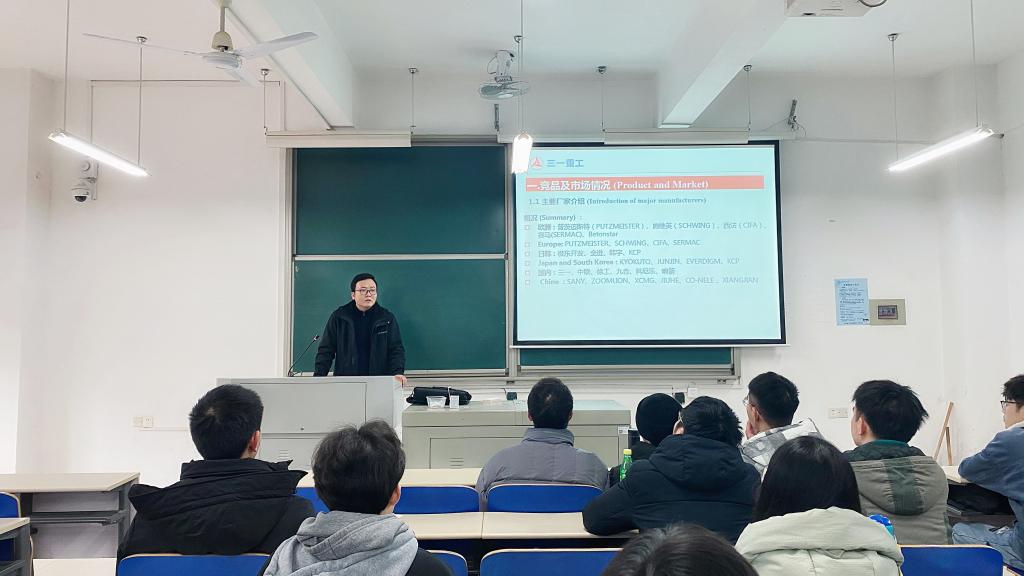 2020年12月16日14:00,三一集团与taptap点点体育联培国际班第七次培训课程在工一B212举行。本次课程由三一集团泵送事业部泵送公司研究院研发所长黄运明领导主讲,主题为“泵车总体设计培训”,国际班十八名学员参与了此次培训。