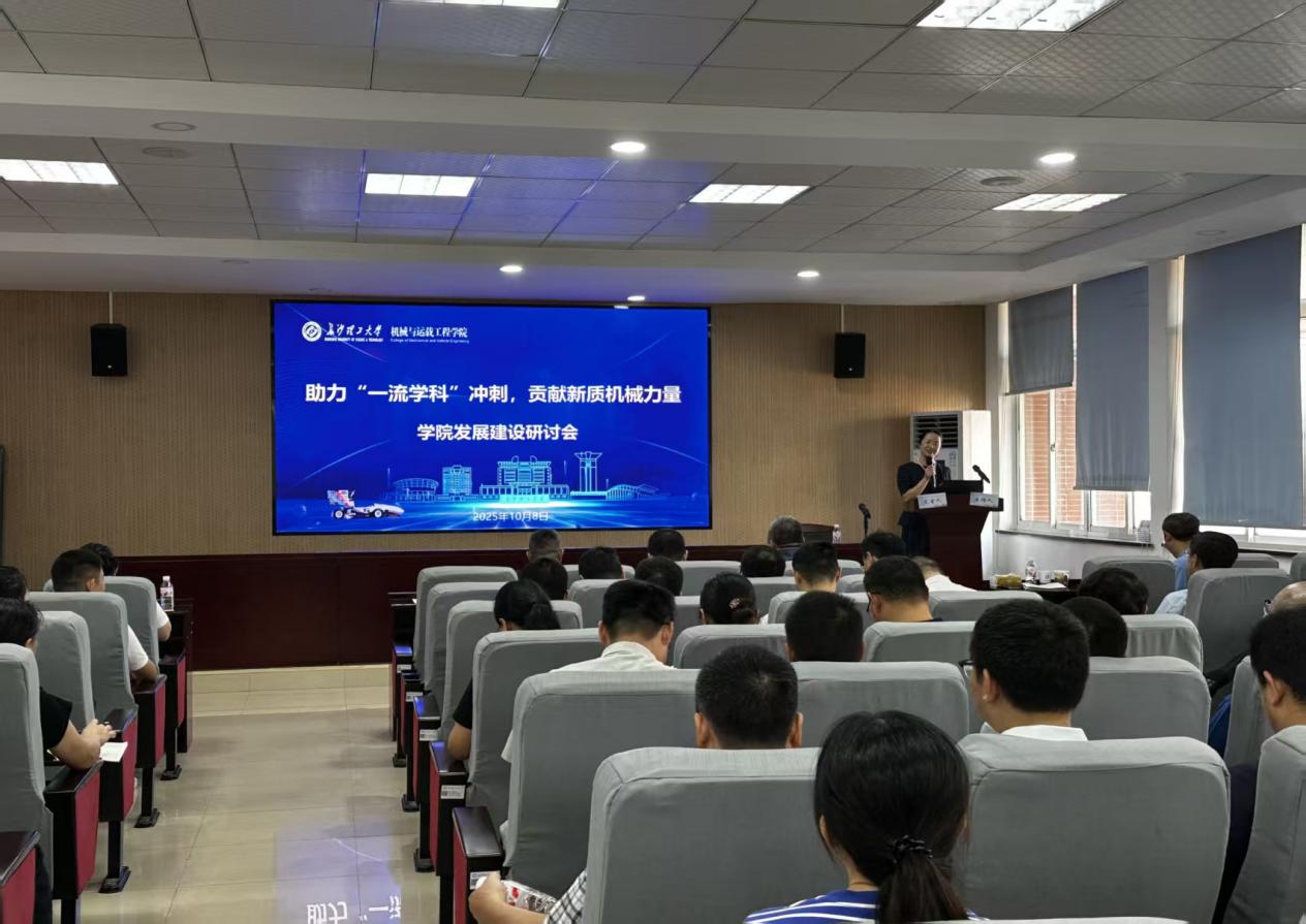2025年10月8日,机械与运载工程学院发展建设研讨会在工科一号楼B417会议室顺利召开。本次会议以“助力‘一流学科’冲刺,贡献新质机械力量”为主题,学院全体教职工齐聚一堂,共商发展大计,共谋学科未来。