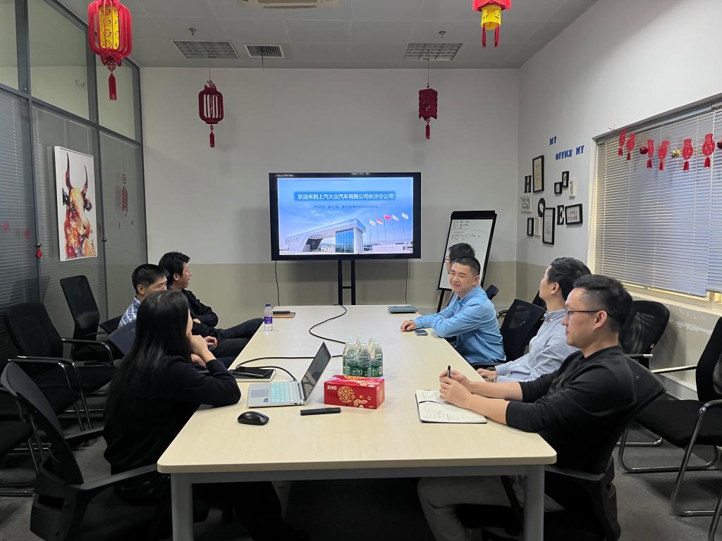 在交流环节,上汽大众人力资源部曹振介绍了上汽大众长沙工厂的发展沿革、目前成绩和招聘情况,并就校企共建实习实践基地进行了交流和展望,伍文广介绍了汽机学院的基本情况、科研成果和学生就业,并表示欢迎上汽大众到学校开展招聘活动。