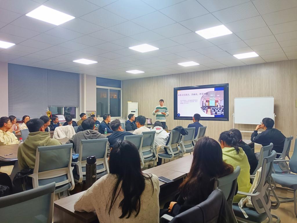 分享会上,来自机制、车辆、智能制造、测控等专业的8位已签约的毕业生作为主讲人进行了分享。艾永琪分享了他在秋招求职时从迷茫到多选机会的签约求职路。宋纯以正视性别问题,打破求职堡垒为题,从求职态度、现实困境和求职策略等方面,分享了机械类专业女生的求职历程。李林江主要针对不同类型的面试,分享了如何与HR同频沟通的底层逻辑、实用技巧和常见问题。阿塔吾拉•艾力分享的是成绩不好该怎么区别化竞争打破求职困境;柳杨从自己跨校霸面并成功签约美的的经历出发,强调别让过度思考成为你前行的阻碍,自信强大的内心、主动争取的魄力,一定能帮助大家取得成功。邝申彬介绍了能源行业发展形势,分享了作为测控专业的毕业生,从选择到行动,成功拿到中广核和中核两个OFFER的求职历程;陈鑫炎分享了求职过程中的精神力量是保持积极心态;哈潇分享的是在北来南往,一个西北籍学生如何在就业地域选择中实现自洽的心路历程。