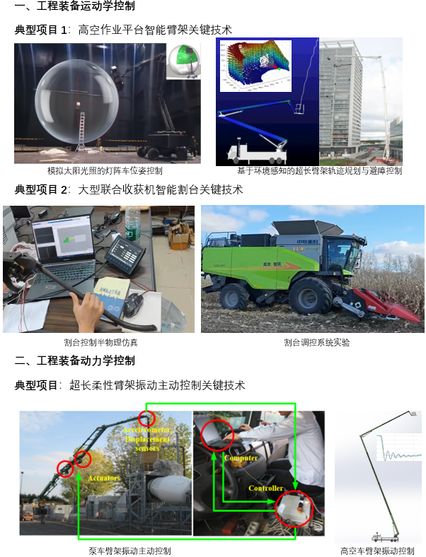 1、国家重点研发项目子课题(2024YFB3411104-02),百米级载人臂架智能感知与操控技术研究,2024.12-2027.11,主持 2、校企合作项目(中联重科股份有限公司),收获机割台智能调控系统开发,2023.01-2025.06,主持 3、湖南省科技特派员项目(湖南金蚂蚁智能装备股份有限公司),某丘陵农机模块化智能化属具开发,2025.06-2027.06,主持 4、校企合作项目(上海海希工业通讯股份有限公司),具有臂架轨迹智能控制功能的高空作业车无线遥控器研发,2024.01-2025.12,主持 5、国家自然科学基金(51875048),冲击激励下变结构超长大柔性机械臂混沌振动机理辨析及控制策略研究,2019.01-2022.12,主持 6、长沙市工业科技特派员项目(工程机械产业链),长沙市科技局,2019.07-2021.06,主持 7、湖南省自然科学基金(2018JJ2418),复杂激励下变结构大柔性臂架非线性振动分析及其减振控制研究,2018.01- 2020.12,主持 8、中国博士后科学基金项目(2017M612548),冲击激励下变结构超长大柔性机械臂混沌振动辨析及控制,2017.1-2018.12,主持 9、国家自然科学基金(K1406031-11),复杂激励下变姿态超长柔性机械臂振动机理辨识及主动控制研究,2014.7-2016.6,主持 10、湖南省科技计划项目重点研发计划(2015GK3047),大型干法楼式砂石绿色生产关键技术研究及装备开发,2015.01-2016.12,主持 |