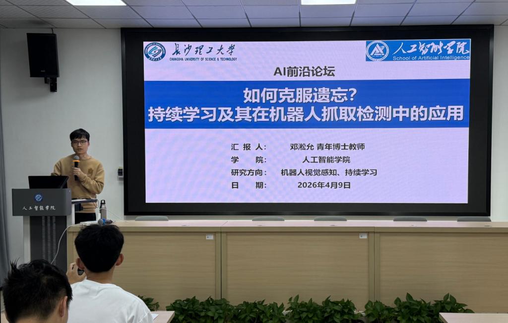 4月9日晚,我院第十六期“AI前沿论坛”在人工智能学院 A201 报告厅举行。本次论坛以“持续学习及其在机器人抓取检测中的应用”为主题,由青年博士教师邓淞允主讲,吸引...