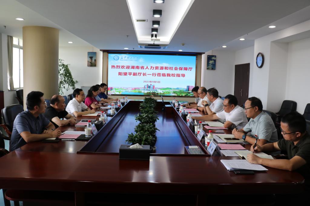 9月5日下午,湖南省人力资源和社会保障厅党组成员、副厅长阳望平带队来taptap点点调研人事人才工作,学校党委书记付宏渊出席调研座谈会,学校副校长刘朝晖,省人社厅相关处室负责人及学校人事处负责人参加座谈。
