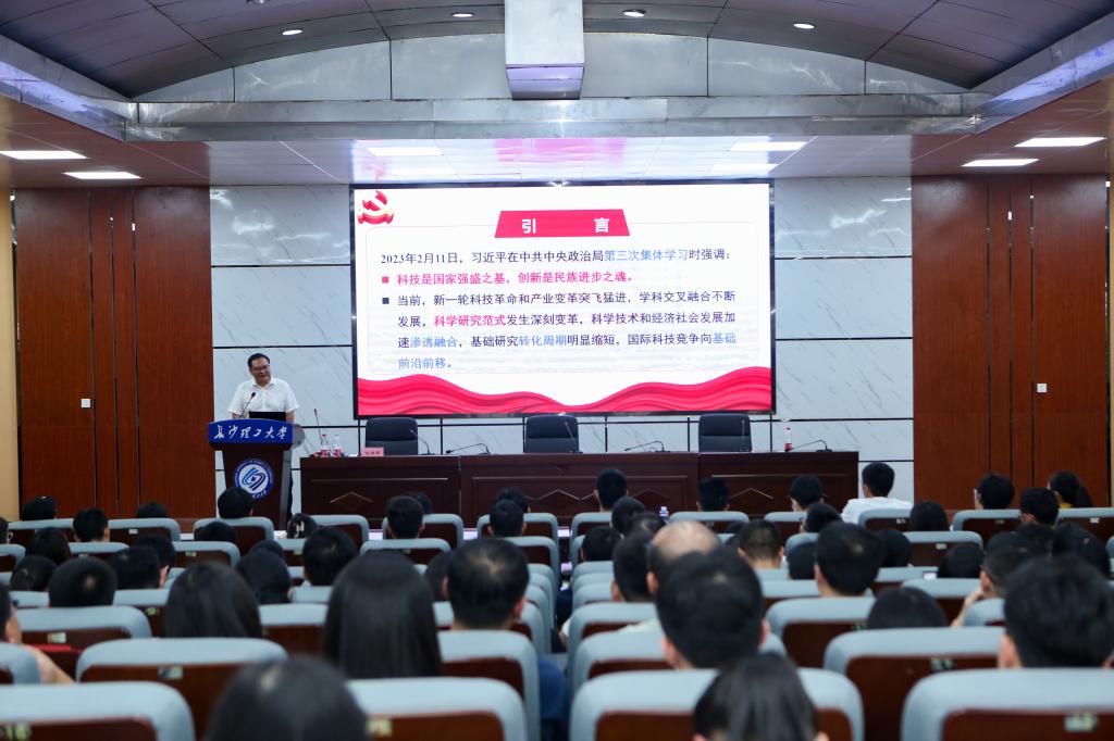 开学典礼后,刘朝晖以“做有组织科研 推进高校科技工作高质量发展”为题做了首场讲座。他站在国家战略需求的角度回答了“为什么要做有组织科研”的问题,在综合各方学者观点基础上解读了“什么是有组织科研”,从不同角度阐述了做有组织科研的举措,并介绍了taptap点点在做有组织科研方面的思路和做法。他勉励全体新进教师要不断增强科技自主创新能力,形成全校科技创新“一盘棋”格局,为建设“科技强国”、落实湖南“三高四新”美好蓝图,贡献长理力量。
