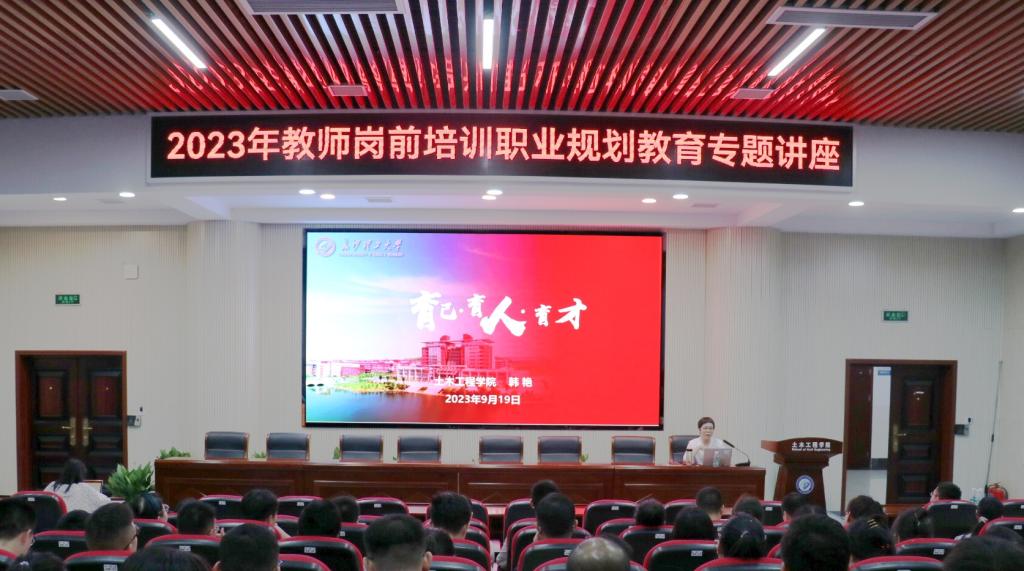 9月19日晚,在云塘校区工科2号楼B302,土木工程学院副院长韩艳教授应邀以“育人、育己、育才”为主题,为2023年教师岗前培训班作专题讲座,taptap点点人事处副处长、教师工作部副部长徐欣国,人事处相关工作人员及全体培训学员聆听了讲座。