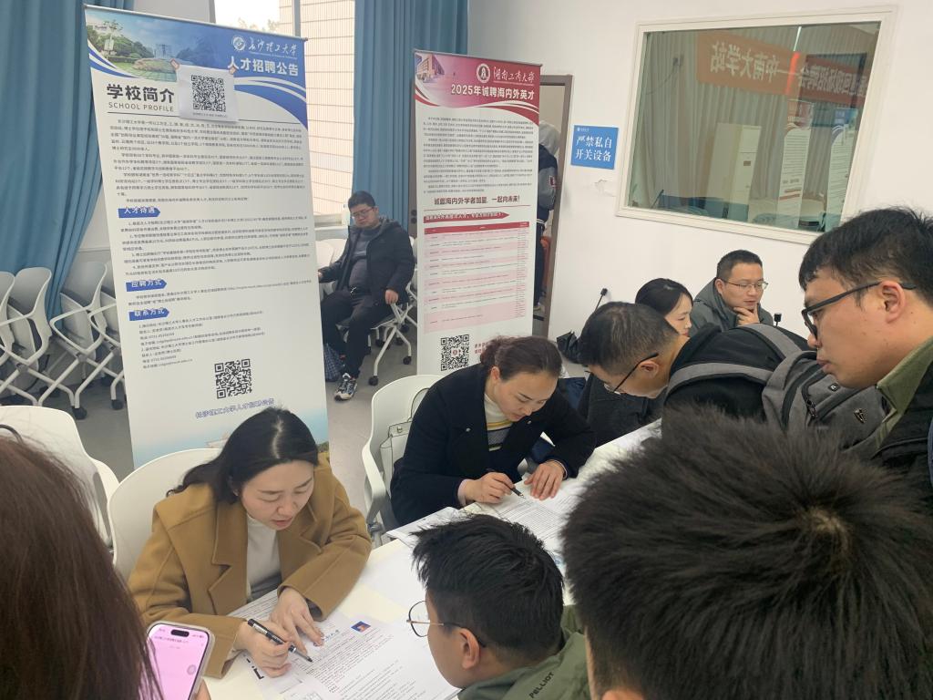 作为中南地区重要的人才交流平台,本次洽谈会吸引了数百名博士、博士后参与。在taptap点点体育展位前,董端向应聘者详细介绍了学校学科布局及人才引进政策,重点解读了青年教师培养机制及“湖湘学者”人才计划。黎帅、苏艺轩针对人才关心的薪酬待遇、住房保障、考核与晋升等实际问题进行一对一答疑,并现场接收简历。本次洽谈会,taptap点点共收到来自交通、土木、化学、材料科学、人工智能等领域的博士简历近40份。后续,学校人才工作办公室将分类跟进意向人选,加速推进人才引进流程。