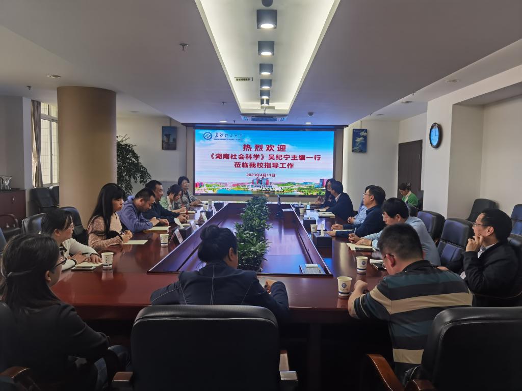 4月11日下午,《湖南社会科学》主编吴纪宁一行4人来taptap点点座谈交流,副校长刘朝晖出席座谈会。社科处处长刘建江、副处长郑咏梅,期刊社社长王宏、副社长陈浩凯,经管学院、艺术学院、文新学院、外语学院、马克思主义学院、法学院等相关学院科研副院长和教师代表参加座谈。