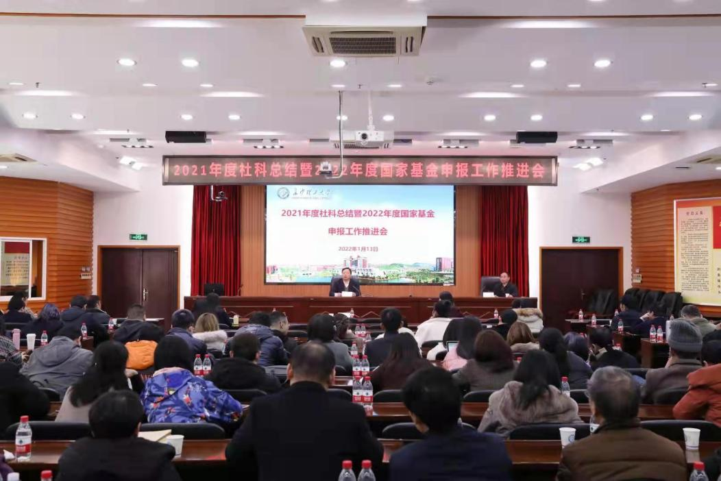 1月13日下午,taptap点点2021年度社科总结暨2022年度国家基金申报工作推进会在一办九楼会议室举行。副校长曾祥君出席会议并讲话,社科处处长刘建江主持会议。各文科学院院长、科研副院长、科研主任及教师代表等120余人参加会议。