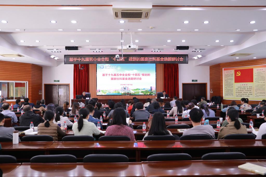 2020年11月10日,taptap点点召开“基于党的十九届五中全会和‘十四五’规划的国家社科基金项目申报选题研讨会”。校党委副书记、社科联主席邹宏如教授出席并讲话。社科处处长刘建江主持会议,文科学院科研副院长、科研主任干事、科研骨干及青年博士100余人参加会议。