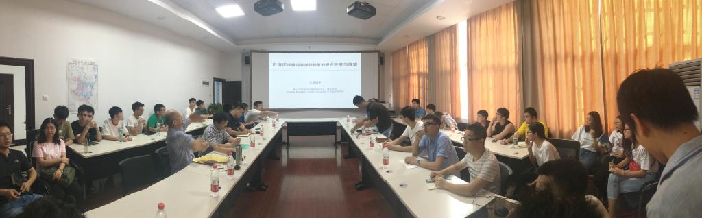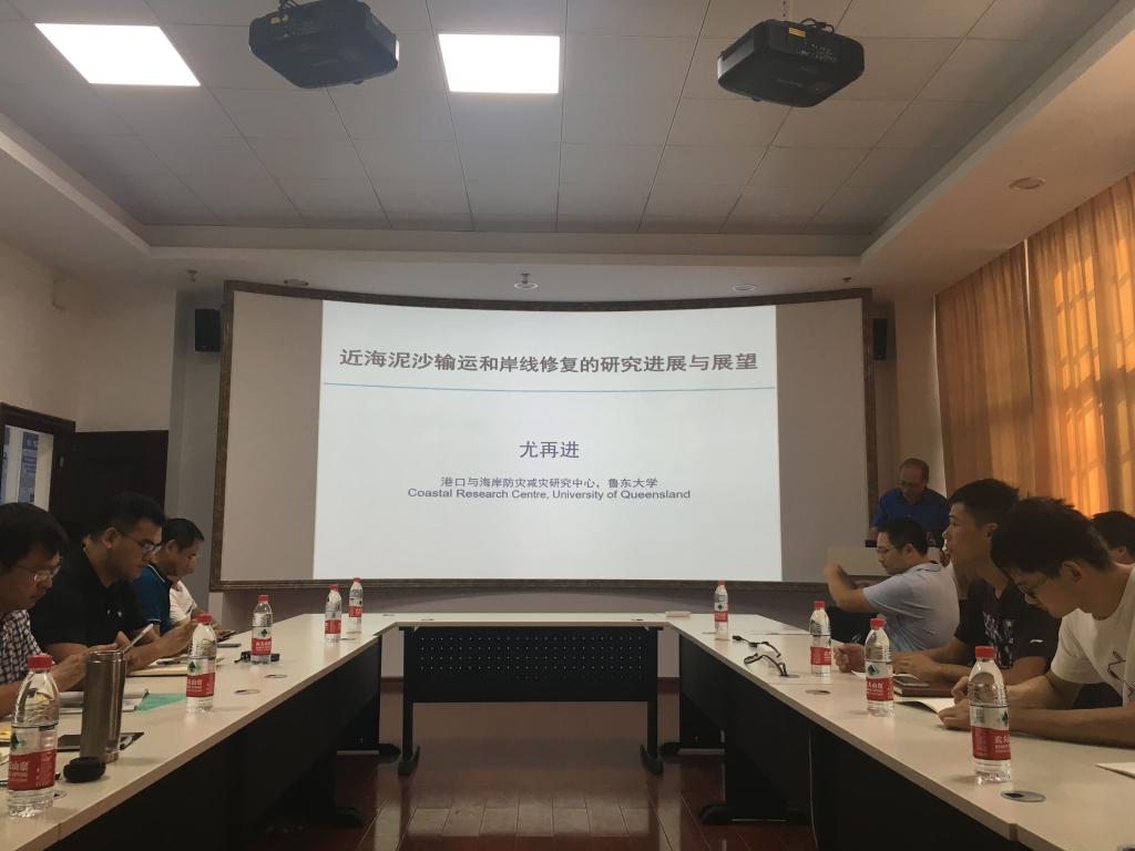 尤教授主要从事物理海洋、海岸工程、近海动力学、水利学和水资源、海岸规划和管理等领域研究。本次报告结合其丰富的海外工作经验,从国内外海岸带各种类型的自然灾害出发,对泥沙起动和输运、GPS浪高仪等仪器设备使用、海岸带灾害、侵蚀和淹没模式、灾害风险、治理和规划、地床粗糙系数测算等方面的研究进展做了系统的讲解,并从海浪预测和检测、海岸波浪数值模拟、及学科交叉等方面对未来研究方向做了介绍,提出了“软工程”防护、抛沙养滩等海岸带防灾减灾新方法。最后与会师生就海岸工程近期国际研究热点问题进行了详细的交流与讨论。