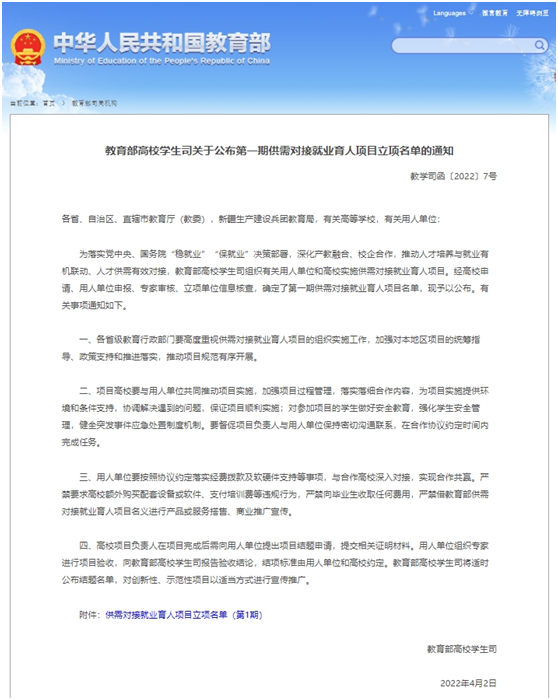 近日,教育部高校学生司下发《教育部高校学生司关于公布第一期供需对接就业育人项目立项名单的通知》(教学司函〔2022〕7号)文件,公布了全国第一期供需对接就业育人项目名单,我院孙士权副教授牵头主持的《北控水务集团—taptap点点体育智慧水务就业实习基地项目》(编号:20220105880)成功获批。