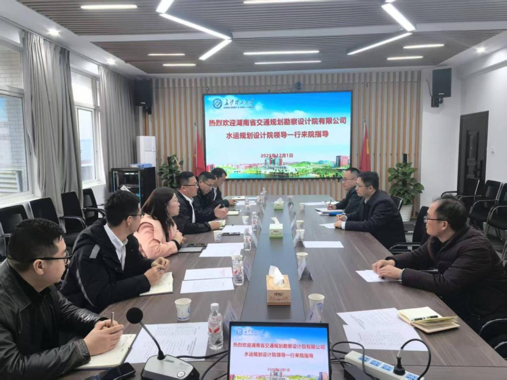 12月1日下午,湖南省交通规划勘察设计院有限公司水运规划设计院院长王能、总工程师刘庆志、田红伟率队来访水利学院,并与学院领导及教师代表召开交流座谈会。水利学院院长陈杰、副院长伍志元、港航系副主任李小超、李江夏、就业指导中心副主任綦丽出席会议。
