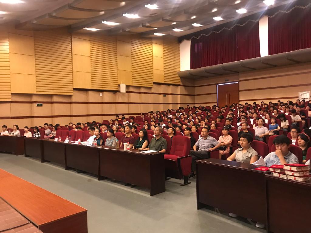 在简要回顾十九大概况后,刘扬对会议报告进行了重点解读,旁征博引,阐述了党的十九大做出的伟大判断和习近平新时代中国特色社会主义思想的伟大创新,逐一列举了在新时代背景下党的一系列新举措,鼓舞与会师生要牢固树立“四个自信”,为实现中国梦注入强大的精神动力。基于高校立德树人、培养人才的初心和使命,报告最后落脚在文化自信上。通过追溯中国优秀文化的发展脉络,以及革命文化和社会主义现代化优秀文化的发展进程,报告指出文化自信是“更基本、更深沉、更持久的力量”。刘扬认为,高校要办有宽度,有温度的教育,并号召与会的师生青年做好文化传承教育,用激情和梦想去追梦,在奋斗和奉献中去圆梦,为祖国的建设添砖加瓦。