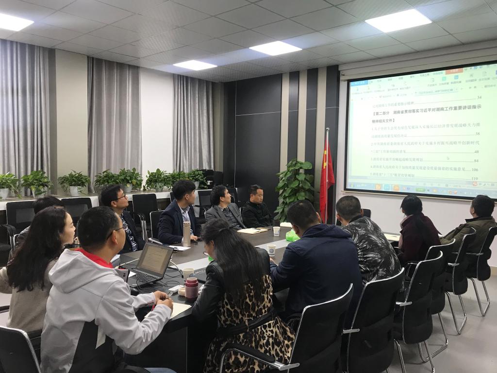 此次会议,喻玲娜传达了学校“关于深入学习贯彻习近平总书记对湖南工作重要讲话指示精神”的通知要求,强调了本次专题学习对我院服务湖南地方经济发展的重要性和迫切性。同时,喻玲娜带领大家逐一学习了湖南日报系列社论,重点学习了与我院发展相关的第七篇社论“守护好一江碧水”,还学习了“湖南省贯彻落实习近平对湖南工作重要讲话指示精神”十个相关文件,《湖南省"十三五"脱贫攻坚规划》和《中共湖南省委湖南省人民政府关于加快推进洞庭湖生态经济区建设的实施意见》两个文件。