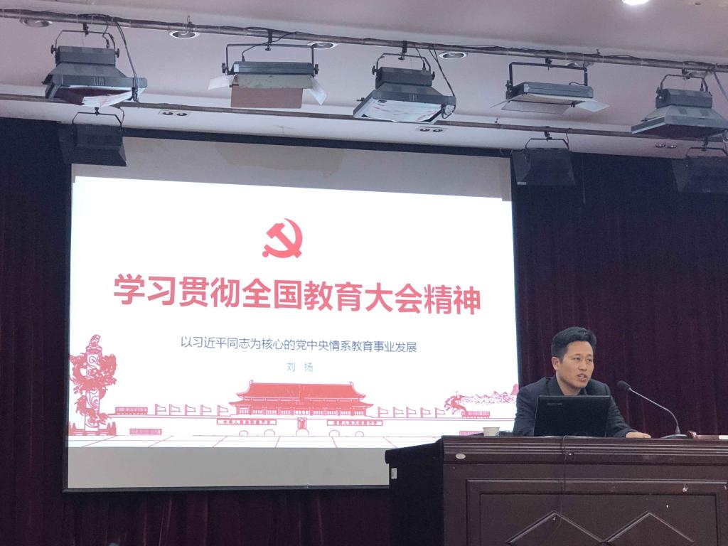 刘扬从四个方面对全国教育大会精神进行了深入解读:一、充分认识全国教育大会的重大意义;二、深入学习习近平总书记关于教育的重要论述;三、扎实推进加快教育现代化的重点任务;四、在贯彻落实全国教育大会精神中建设国内一流理工科大学。他强调,此次全国教育大会胜利召开,具有时机好、规格高、影响大等特点,大会顺应历史潮流、体现历史规律,在新的历史起点上开启了新时代教育事业新征程;习近平总书记关于教育的重要论述体现了高度的战略性、深刻的规律性、鲜明的政治性、强烈的人民性、突出的创新性;taptap点点体育在今后的发展中要继续加强党的领导、巩固马克思主义在意识形态领域的指导地位,要落实立德树人根本任务、培养德才兼备的高素质人才,要聚焦国内一流理工科大学目标、不断提升服务新湖南建设发展的能力。