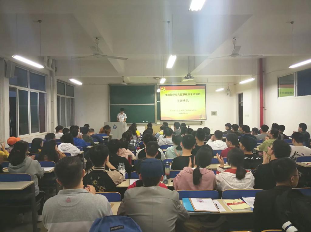 为加强入党积极分子对党的基本知识、基本理论的学习,从源头上优化党员发展质量,2019年5月6日,水利工程学院第33期入党积极分子培训班在工科一号楼A212教室顺利开班,全体75名积极分子、党建辅导员邓奕琳以及党校组工作人员参加了开班仪式,仪式由党校组干事包璞瑞主持。