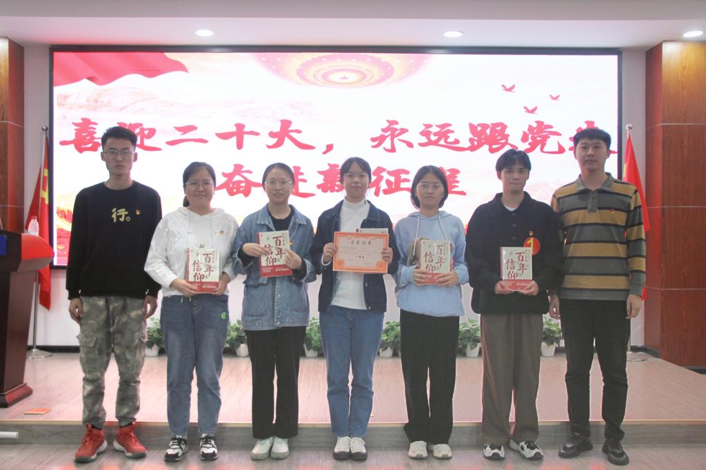 赛事前,支部成员共同观看了《思想的力量》第一集:摆脱贫困的奇迹,再次重温中国脱贫攻坚的伟大历程。在知识竞赛环节,题目结合党的历次代表大会的主要内容,以及党的十八大以来各方面建设的伟大成就,由党员、发展对象和入党积极分子组成的六个小组经过必答题、支部书记现场出题及抢答题的角逐,最终第三组获得了本次比赛的第一名。知识竞赛结束后,所有成员共同录制了喜迎二十大的祝福视频,共同祝愿党的二十大胜利召开。