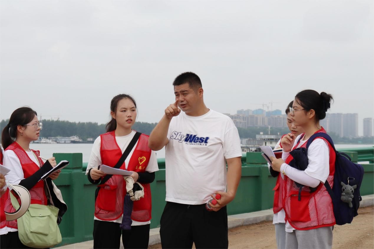 7月19日,实践团先后前往湘江右岸堤防丁字湾段、沙河护堤翻身垸段开展调研。在丁字湾街道农业农村办水利专干王耀球、丁字湾社区工作人员肖鹏的介绍下,团队成员了解了护堤、泵站、基台等水利设施的运行情况和工作原理,并且针对堤防的防洪排涝作用和数字化技术运用情况进行了详细咨询。通过对社区工作人员李立民进行采访,进一步了解了堤防的管理制度体系。调研过程中,团队成员还对堤防周边水体进行了取样,后续带回实验室进行水质检测。