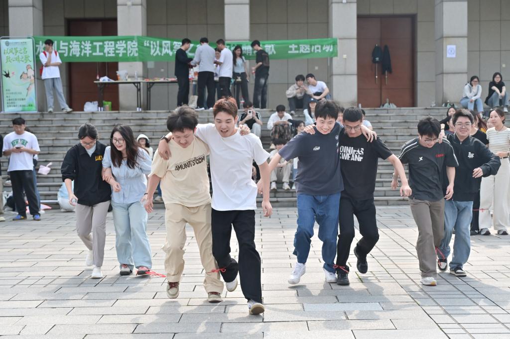 活动开始,各队需通过两轮闯关赢取制作材料。首轮“春日成语接龙”以“春”“风”“水”等字出题,各队妙语连珠,根据积分排名优先挑选限定材料包。第二轮“两人三足接力”考验默契与速度,队员们揽肩并足、奋力冲刺,用时越短的队伍可获得额外创意装饰材料。