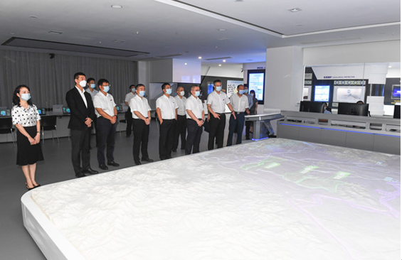 在“智慧洞庭”信息化平台前,朱忠明观看了洞庭湖三维电子沙盘,查看了一江一湖四水的综合信息情况。当了解到该平台可以通过三维GIS可视化对流域实现数字化监控、集成化管理、科学化预警与智能化决策时,朱忠明饶有兴致地询问了实验室整合的数据、实验优势以及为洞庭湖环境保护提供的诊断和预测。