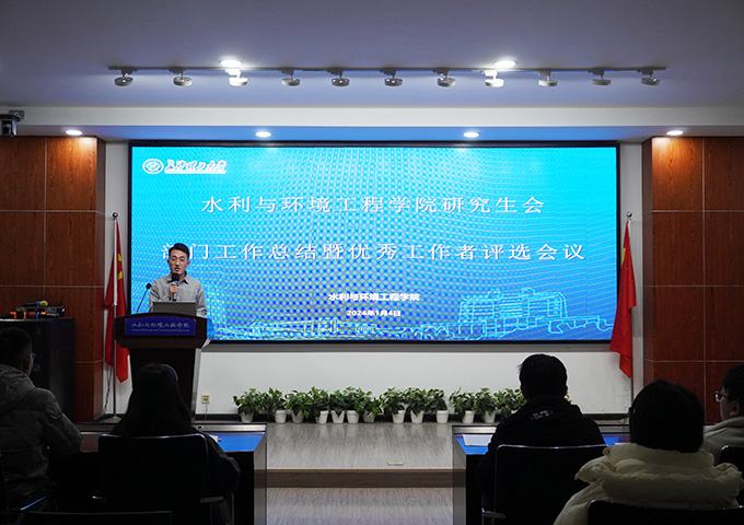 为总结院研究生会本学期工作,促进研究生会各部门之间的交流合作,2024年1月4日18:00,水利学院于工三B319召开2023—2024年第一学期院研究生会第二次全体例会暨院研究生会“优秀工作者”评选会。此次会议由院研究生会负责人吴琼主持,研究生辅导员杜丘及研会全体成员参会。