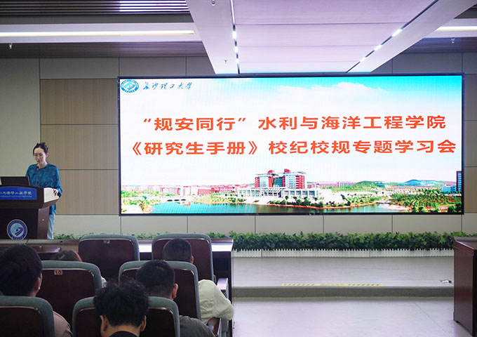为进一步加强2025级研究生校纪校规教育,9月18日上午,水利学院在云塘校区新能源大楼1栋二楼会议室组织开展了校纪校规专题学习会议。本次会议由研究生辅导员杜丘主讲,2025级全体研究生新生参加。