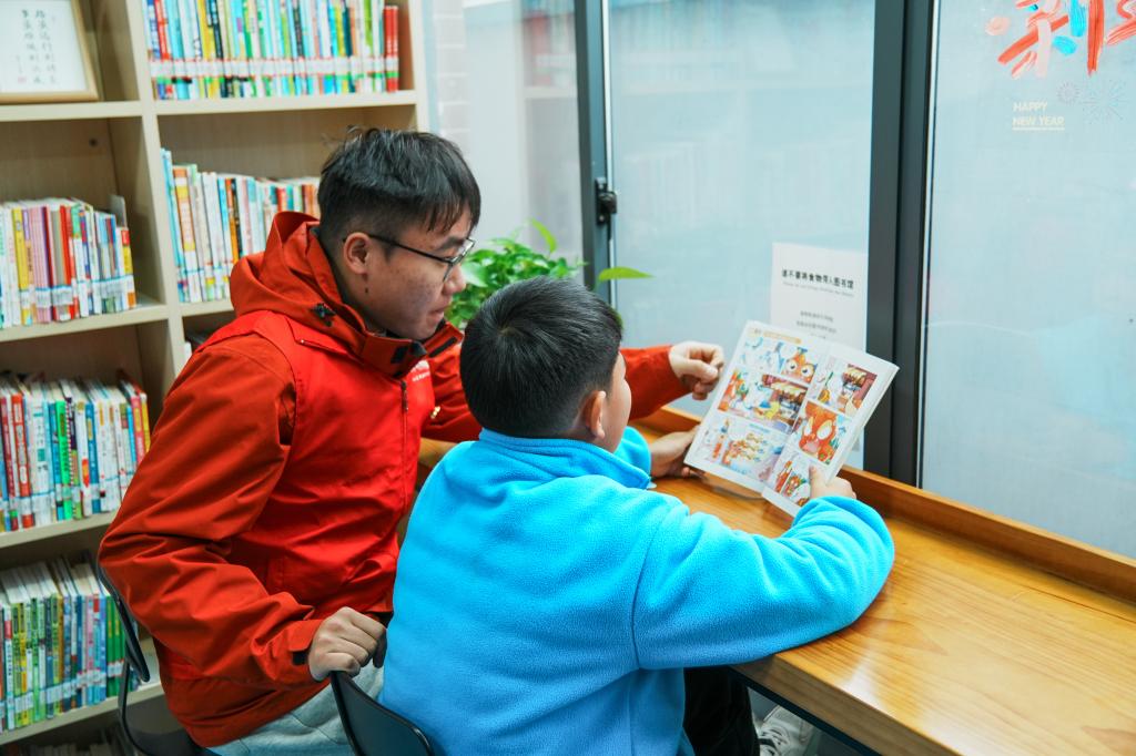 志愿服务期间,志愿者主动帮助小朋友挑选适龄图书,讲解阅读注意事项,并为小读者们阅读绘本。现场书香弥漫,氛围温馨,那一抹抹“志愿红”成为了图书馆里最亮丽的风景线。