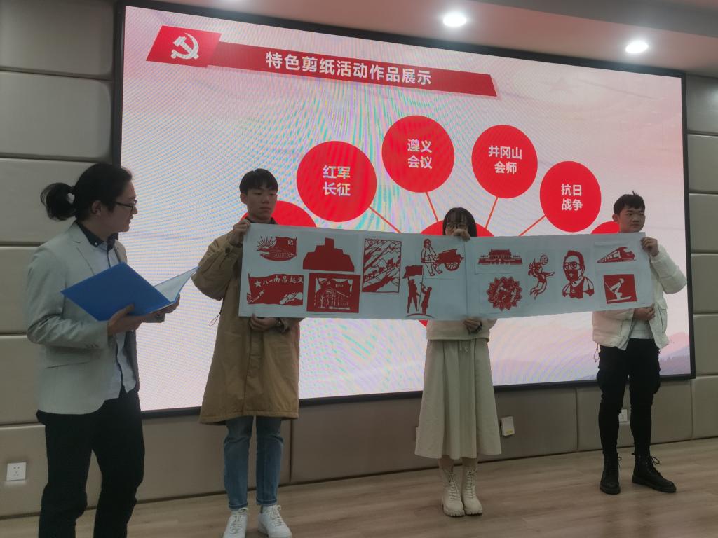 四个小组分别上台舞台剧、诗歌朗诵、经典诵读、志愿服务形式呈现出党史学习教育过程中的思考与感悟,以献礼中国共产党成立一百周年。其中第二小组现场演绎了肖文儒、屠呦呦、钟南山等人物故事中的经典片段第四小组全体成员身着白衬衫,胸前佩戴党徽,进行了“请党放心、强国有我”诗歌朗诵。第六小组以特色剪纸的形式回顾了党百年奋斗历程中的重大事件实践汇报引来了全场的阵阵掌声,也掀起了在全体党员中学党史,悟新知活动的又一次高潮