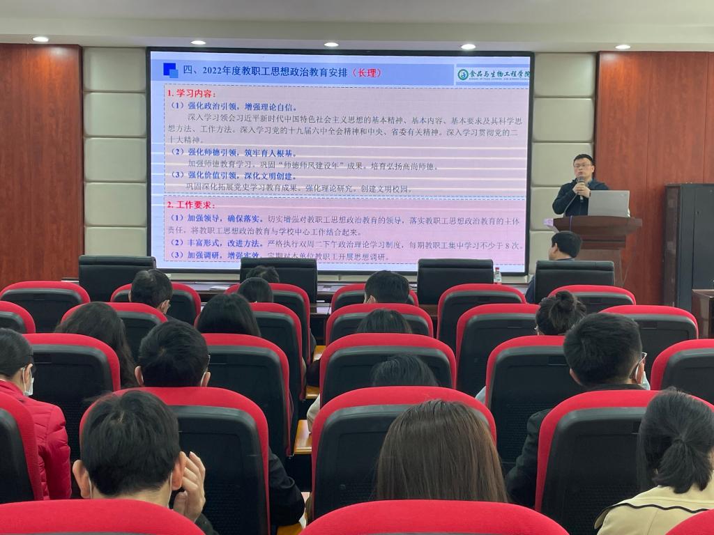 紧接着,王建辉又传达了党委宣传部发布的《2022年度教职工思想政治教育安排》的通知,他强调我们的老师们要不断加强思想政治教育,提升思想政治素质,要坚持“四个相统一”,当好“四个引路人”,争做“四好老师”,要切实落实好立德树人这个根本任务,并要求全院严格执行双周二下午政治理论学习制度,每学期教职工集中学习不少于8次,同时表示学院2022年度教职工思想政治教育安排将于近期发布。