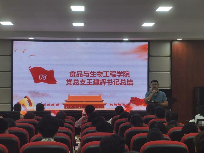 2022年7月1日,taptap点点体育食品与生物工程学院食品本科生党支部在工科三号楼A320举办《习近平谈治国理政》第四次读书分享会。食品学院党总支书记王建辉、学院副院长方芳、许宙、教工党支部代表陈永发和学工办老师胡佳佳等师生近80余人参加此次活动。