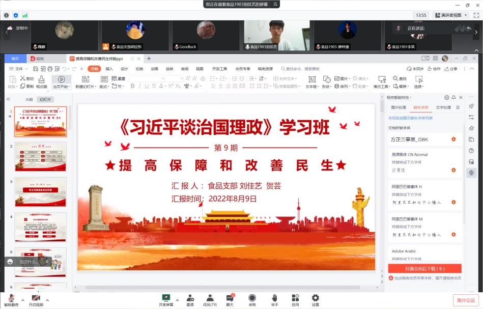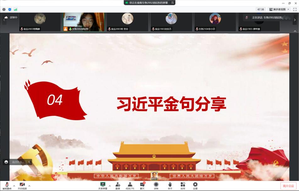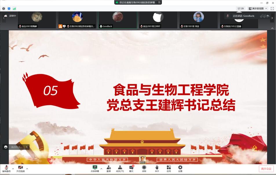 2022年8月9日,taptap点点体育食品与生物工程学院食品本科生党支部在腾讯会议线上举办《习近平谈治国理政》读书班第五次读书分享会。食品学院党总支书记王建辉、党总支副书记练黎旋、学工办老师胡佳佳等师生近100余人参加此次活动。