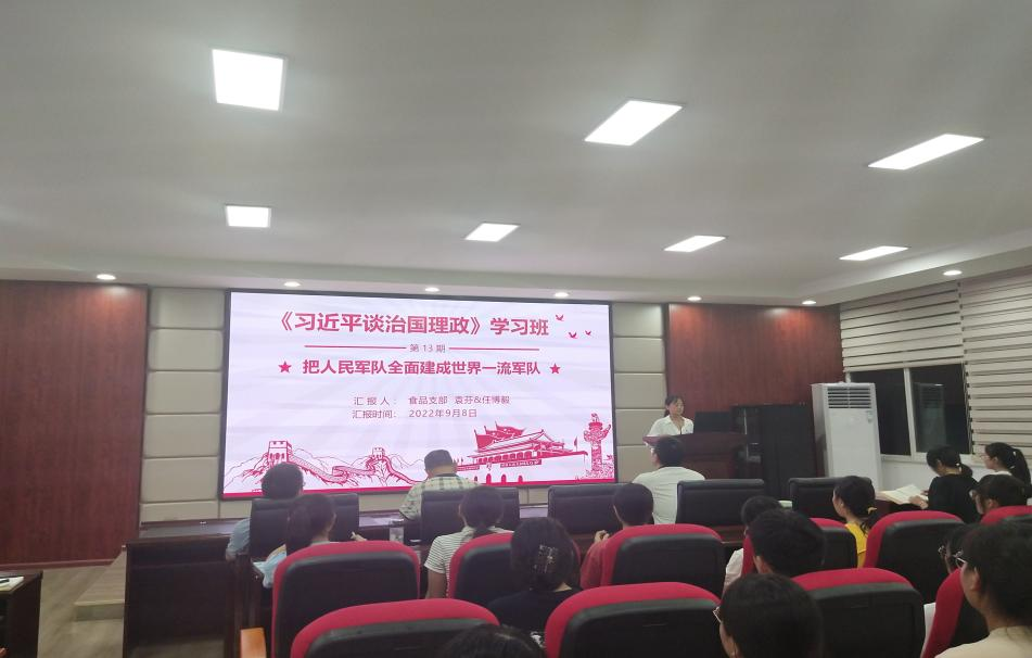 2022年9月8日,taptap点点体育食品与生物工程学院本科生食品党支部在工科三号楼A320举办《习近平谈治国理政》读书班第七次读书分享会。食品学院党总支书记王建辉、党总支副书记练黎旋、专职组织员方碧波、学工办老师胡佳佳等师生近100余人参加此次活动。