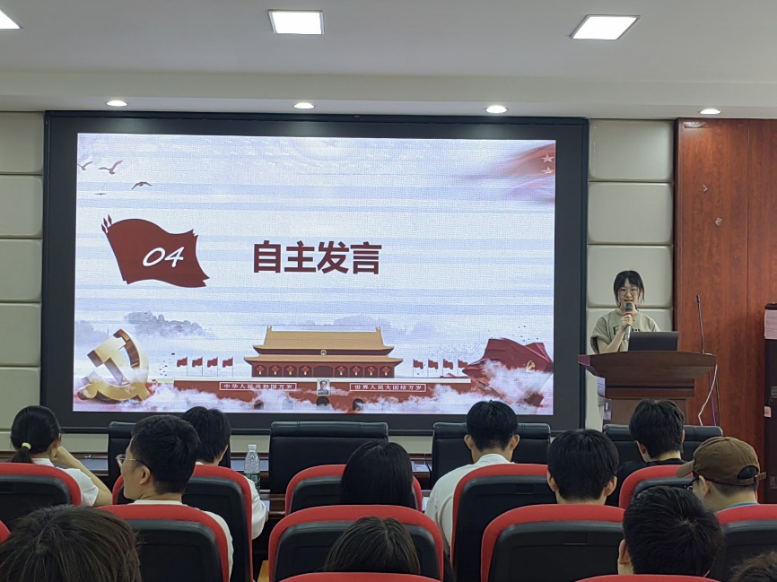 自主发言环节,学员代表一一上台分享。其中,王传洋同志从国际和国内角度对于新质生产力发展的意义做出分析,表示我们应该重视科技创新和生产力的发展,粟昱源同志则从如何发展新质生产力出发,以追求创新,因地制宜发展等角度阐释如何去发展新质生产力。