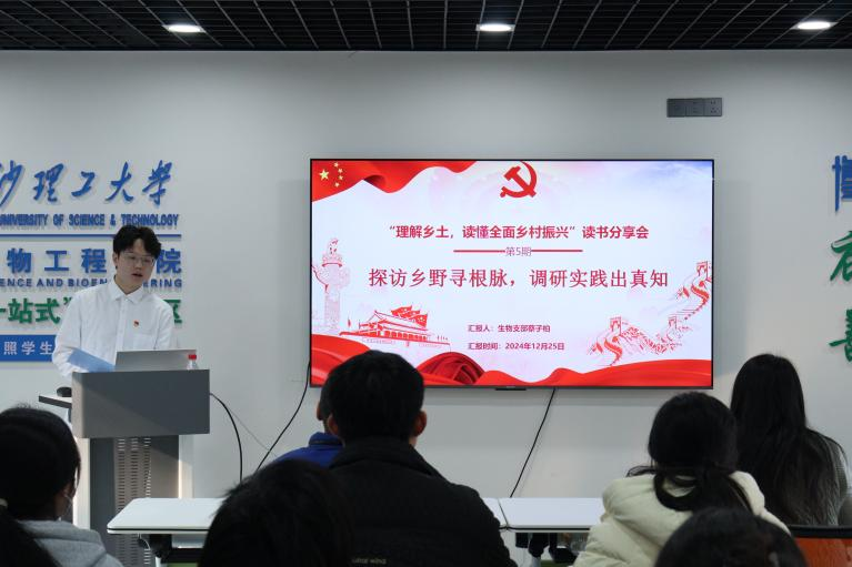 12月25日,食品学院学生党支部在“一站式”育人社区开展了“理解乡土,读懂全面乡村振兴”第五期读书分享会。专职组织员彭玉楼、学工办胡佳佳等师生50余人参加。