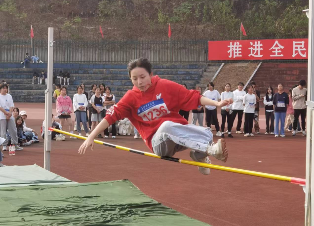 本次运动会的教职工赛程中,我院教职工由练黎旋书记带队,各老师积极报名参加,在比赛过程中团结协作、踔厉奋发。经过激烈的角逐,最终贺小红老师夺得教职工女子跳远第三名;李虹辉老师夺得教职工男子组跳远第五名;练黎旋书记勇夺教职工立定跳远项目第七名。在50米迎面跑,长绳比赛中,我院老师团结一致,奋起直追,展现了我院昂扬向上的风采和顽强拼搏的精神风貌。
