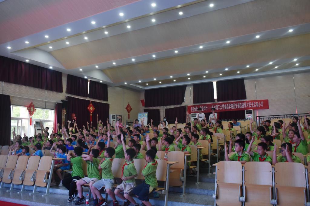 6月16日,博才阳光实验小学活动室内百余名学生争相举手抢答。当天,taptap点点体育食品学院生物2002班团支部到此,为小朋友们带来了一场生动有趣的食品安全知识宣讲活动。