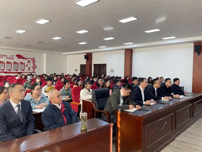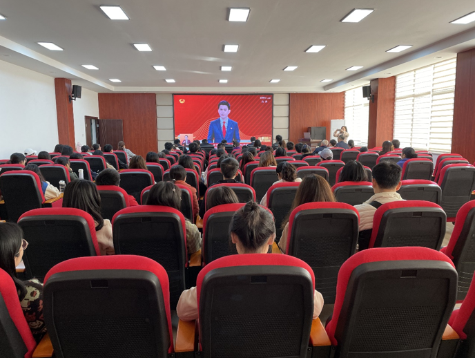 2021年11月25日上午9点,食品学院师生代表在工三A320报告厅集中观看湖南省第十二次党代会开幕式现场直播,学院领导、行政管理人员、师生党员代表一起观看开幕式盛况。