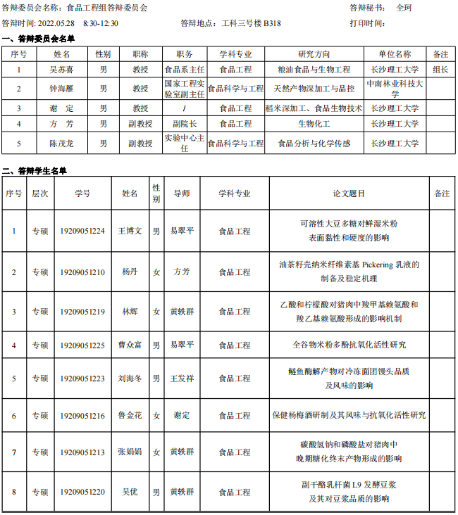 2022年食品与生物学院研究生论文答辩安排表(二)