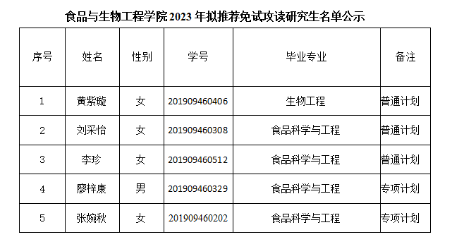 食品与生物工程学院推免生推荐工作小组