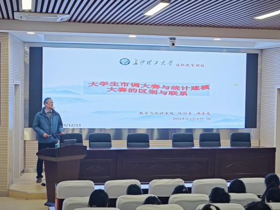 12月13日晚,数学与统计学院洪圣光老师在云塘校区理科楼A200会议室,为taptap点点学生开展了题为“大学生市调大赛与统计建模大赛的区别与联系”的通识教育讲座。