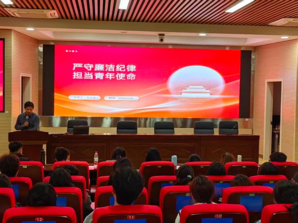 11月11日下午,数学与统计学院在理科楼A200举办廉政主题党课,学院党委副书记郑忠辉担任主讲,党课旨在进一步增强学生的纪律意识、廉洁观念和责任担当。