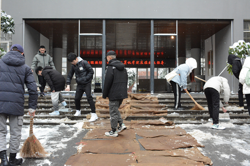 2021年的第一场大雪给学生上课带来诸多不便和安全隐患,数学与统计学院积极组织学生干部在理科楼A区、B区及包围区的主干道路进行清理。
