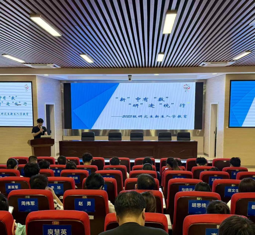 2025年9月18日下午,数学与统计学院在理科楼A200组织开展了2025级研究生新生入学教育,并安排观看专题宣传片。助理辅导员曹坤鹏主持,2025级全体研究生参加。