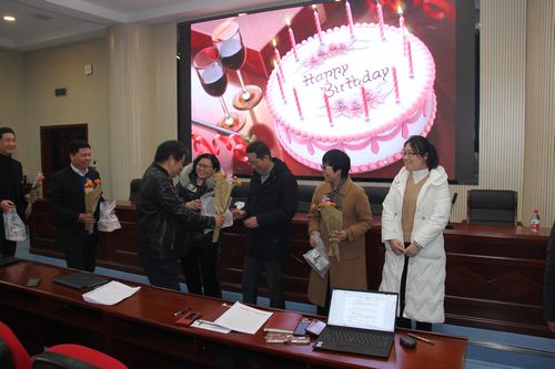 3月2日下午,土木学院在工二B301召开2021年春季学期第一次教师大会。为体现学院对每一个教职工的关爱,让老师们感受到土木这个大家庭的温暖,学院分工会给3月份过生日的7位教师送上一份惊喜。“祝你生日快乐,祝你生日快乐……”当欢快的旋律在会议室响起,院领导代表分工会为7位寿星送上芳香四溢的鲜花、精美的蛋糕和温馨的祝福。