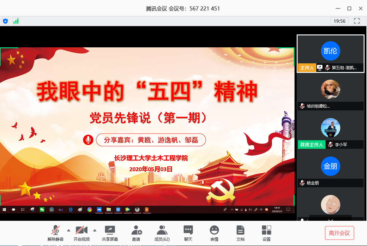 5月3日晚,在“五四”青年节来临之际,土木工程学院举办“党员先锋说”启动仪式暨首场分享会。学院教师党员黄戡老师,建工1702班学生党员游逸帆、2018级研究生党员邹磊应邀为大家分享了他们在疫情期间的参加疫情防控的战“疫”故事。院党委副书记黄阿明,院团委书记綦丽,第35期入党积极分子和全体团学干部参加,学生总党支副书记李小军主持分享会。