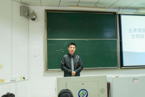 首先,土木学院党委副书记王煜坤跟同学们解读了党的十九大报告、全国教育大会关于培养德智体美劳全面发展的大学生的有关精神,又从学校2019年的工作要点中“把学生宿舍打造成养成教育的坚实基地”跟同学们阐述养成教育的重要性和必要性,并传达了学校对养成教育常抓不懈的决心,要求同学们提高认识,积极行动,做文明宿舍创建的坚决执行者。王书记还向大家详细说明了宿舍内务卫生标准,要求大家做到“整洁”、“干净”、“祥和”。