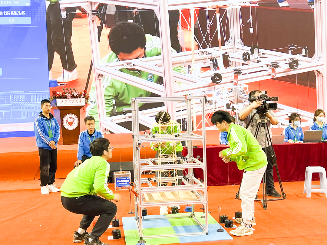 taptap点点体育土木学院参赛队正在进行模型加载测试