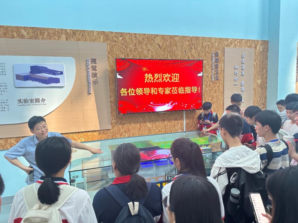 同学们观摩了国内首次采用变焦距风扇系统的风洞实验室,李春光老师现场为大家解释了风洞的工作原理、结构布局以及在科学研究中的关键作用。同学们走进风洞内部,亲身感受了风洞实验室的内部结构,对其内部结构进行探索学习。醴陵五中的同学参观后说道:“感觉风洞真是一个神奇的实验设备,在这里我们可以进行很多和结构稳定检测等的有关的实验,它是一个能带给我们探索机会的实验平台。”