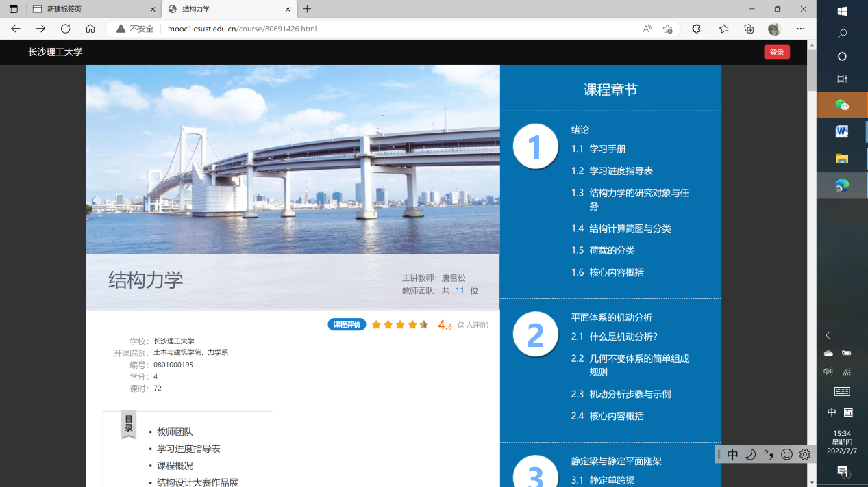 结构力学课程,2014年成为taptap点点体育首门建成并投入使用的慕课课程,2018年成为门批湖南省精品在线开放课程。